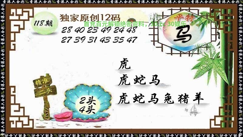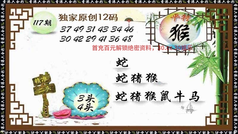| 118期:⑥肖【蛇鸡猴龙兔马】开:猪31错 |